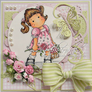 So here's Tilda with Butterfly Dress...you can find her and all of her Tilda and Edwin friends at Magnolia-licious...my fave online store for all things Magnolia. I colored Tilda with Copics and Prismacolor pencils. DPs are from a variety of places...primarily Heidi Grace and Prima...with some cardstock from DCWV.