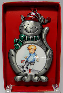 A Christmas card! I had to chuckle . . . last week at this time I was at the beach . . . and yesterday (when I was making this card) I was listening to Christmas music! haha!! For this week's card, I merged two Mo Manning images . . . Charlie Caroling (available HERE) and Christmas Lamp Post (available HERE). Here's a close-up (albeit a bit blurry) . . .